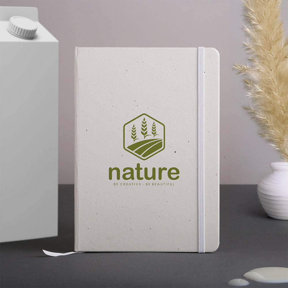 A notebook that once held milk now holds your ideas. Lined sheets and a sturdy cover made from recycled milk cartons turn everyday notes into a small act of giving back.