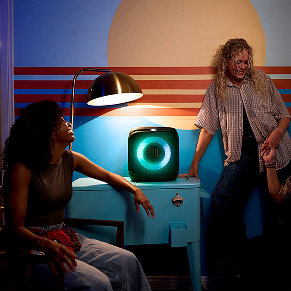 Imagine tucking a sound system, light show and karaoke machine under your arm to take to a party. Actually, you can do just that with the JBL PartyBox Encore Essential. This all-in-one speaker has built-in Bluetooth for wireless streaming, has a mic input for karaoke and a light ring that syncs with the beat.