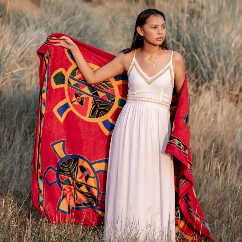 The “Turtle Dance” Velura™ Throw is a super-soft, microfiber Velura throw blanket featuring the artwork of First Nations artist Dawn Oman.