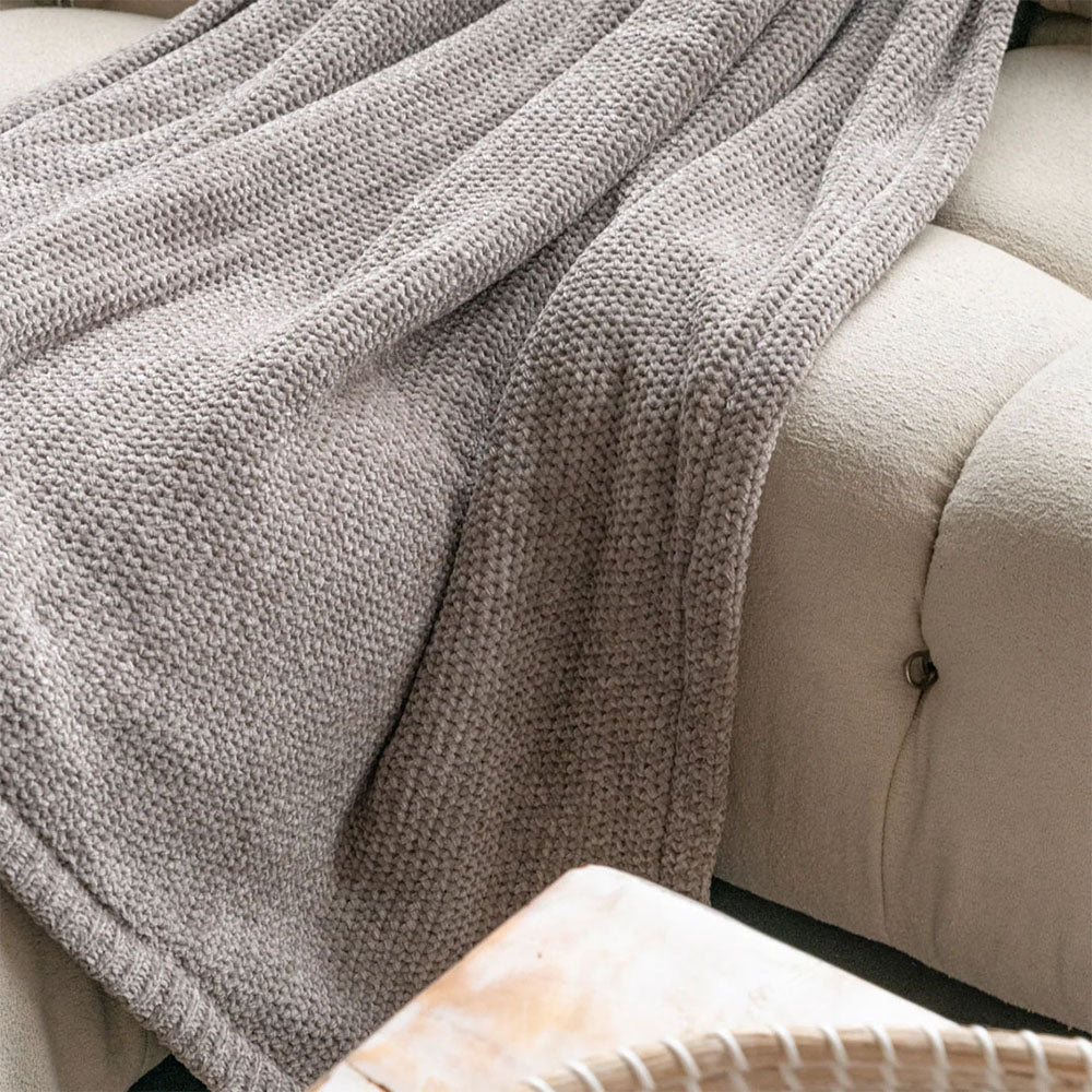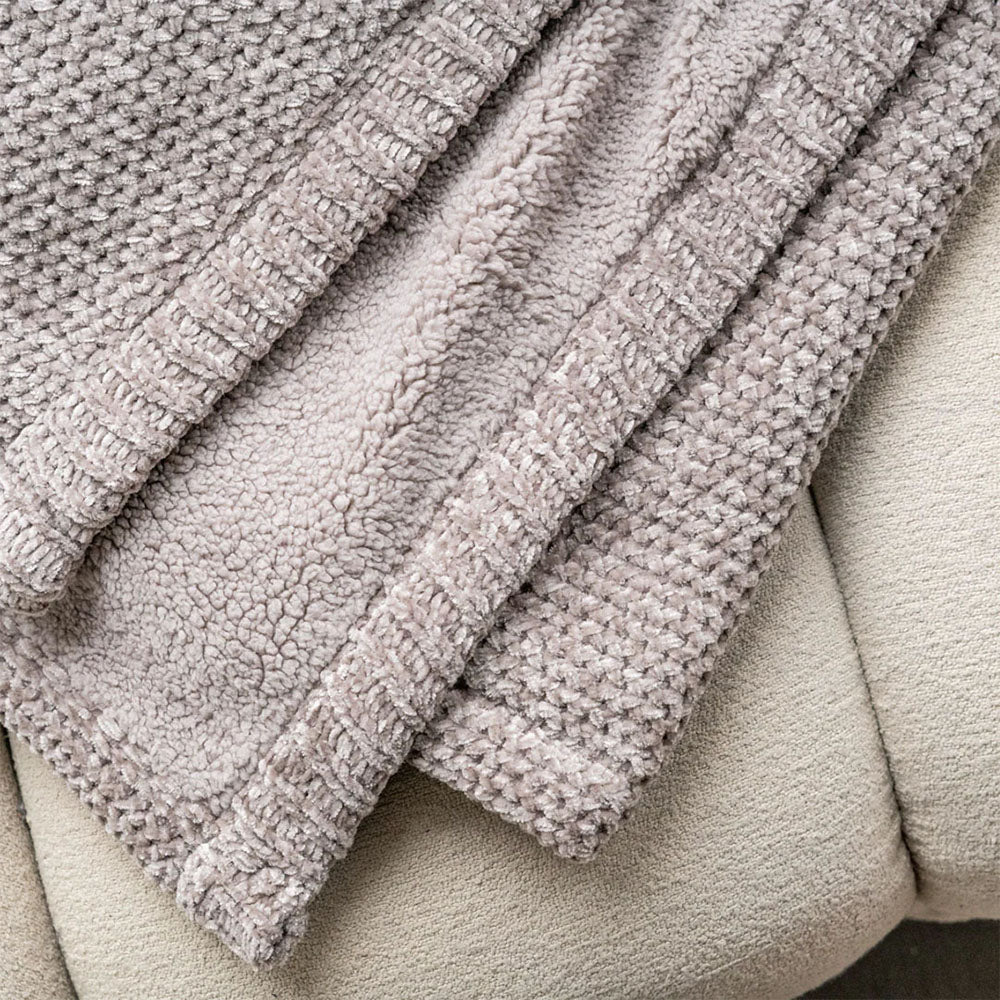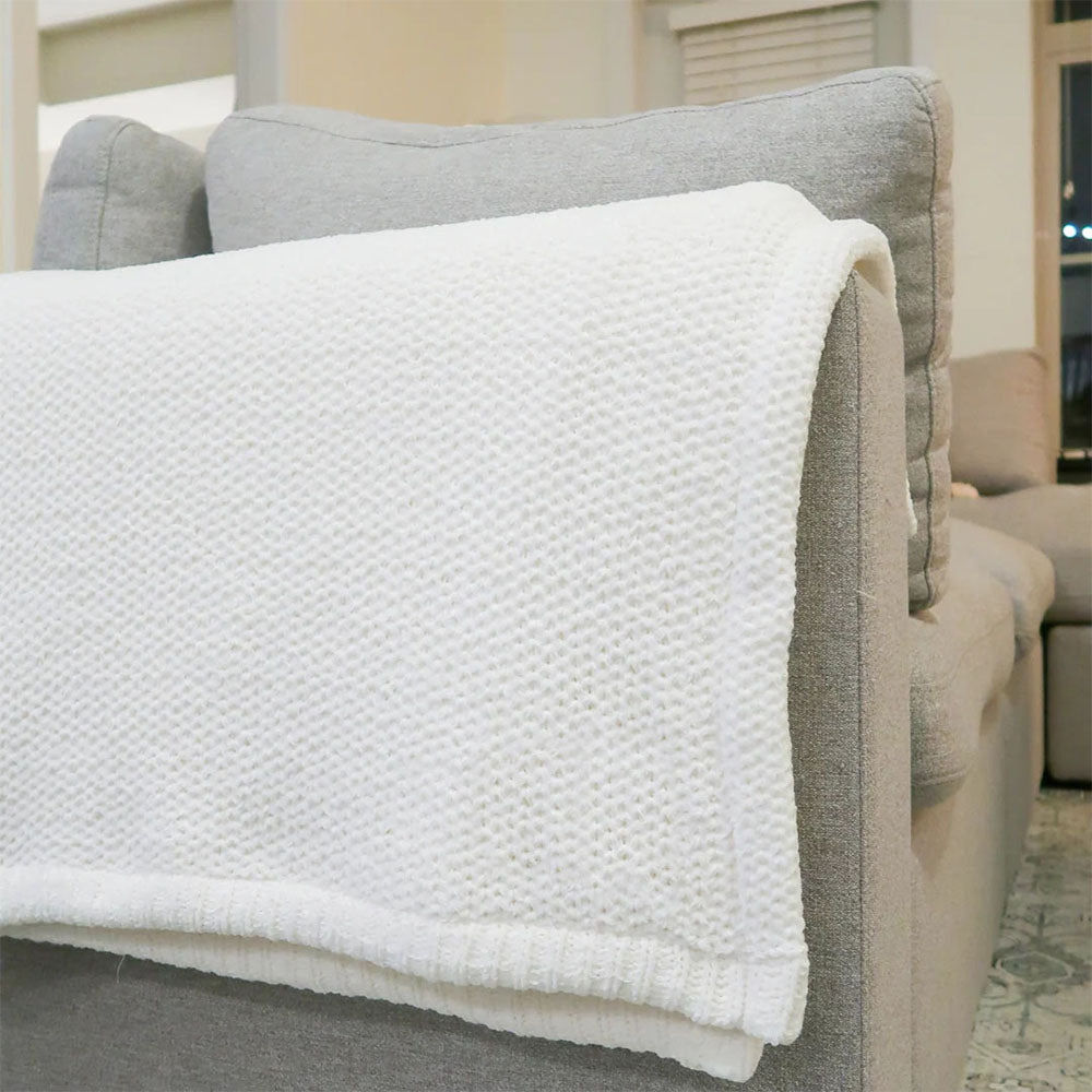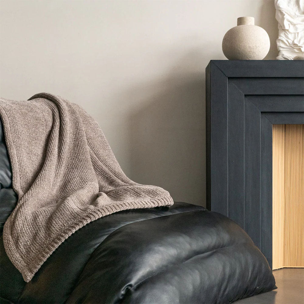 The Whistler Throw is a 50" × 60" blanket that feels as good as it looks, with a raised waffle weave that catches the light and a sherpa reverse that holds warmth close. Drape it across a sofa and the textured side instantly adds depth to the room; flip it over and the sherpa invites you to sink in. Available in stone or ivory.